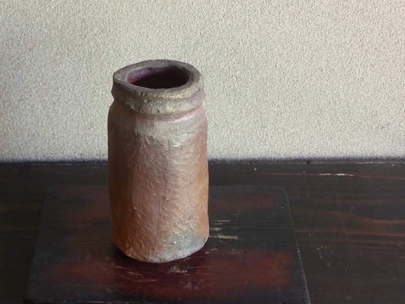 吹上の土を手びねりで仕上げた、焼き締めの花入れ。