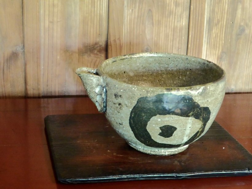 薪窯/吹上の土で作った灰釉の片口。